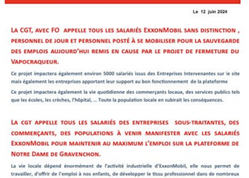 Mobilisation interprofessionnelle le 21 JUIN à 12H130 - porte A Exxon Mobil Gravenchon
